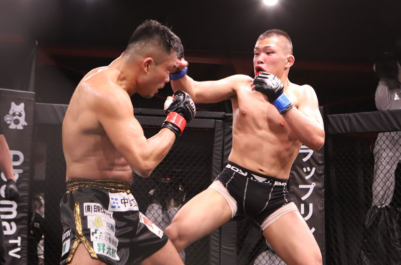 国内中量級キック屈指の実力者・緑川(左)に健闘してみせた西川