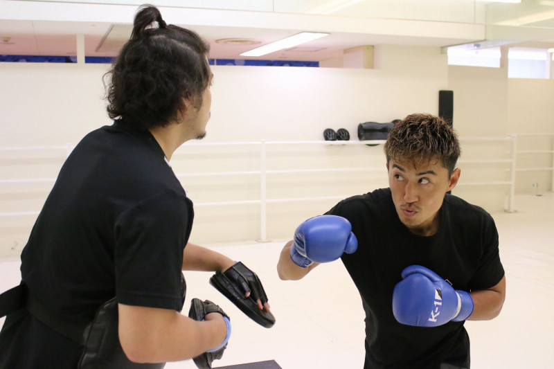 公開練習で1Rのミット打ちを披露する山崎。©️K-1