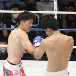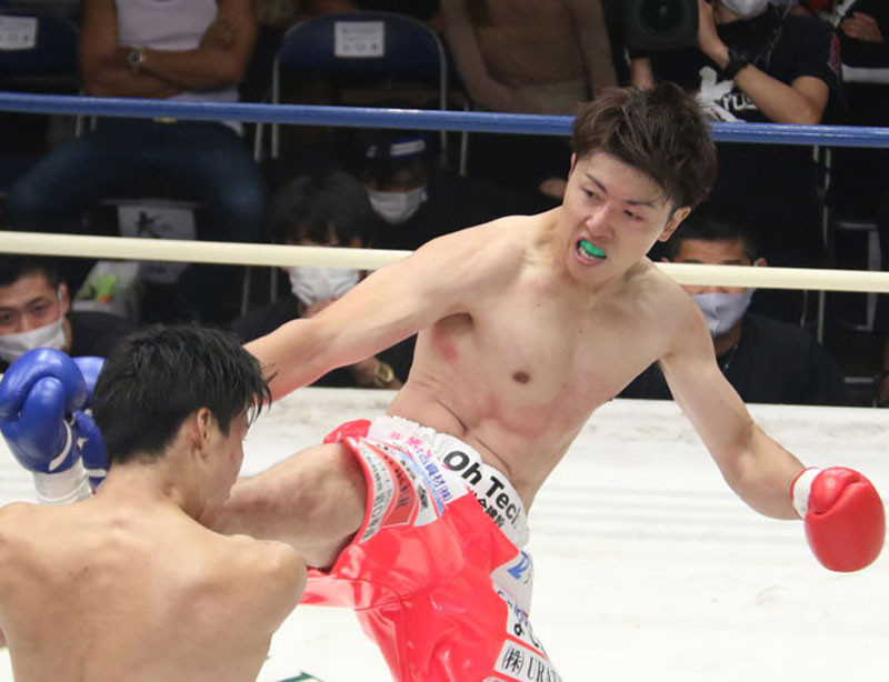 代名詞のミドルキックが生かせるようなパンチ技術習得を課題にしている山際(右)