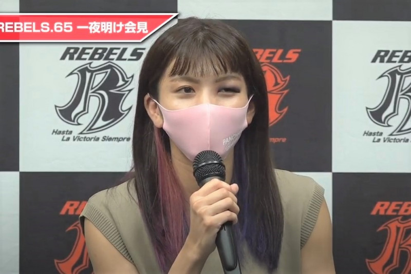 一夜明け会見に臨んだぱんちゃん、バッティングで晴れた左目が痛々しい(YouTubeより)
