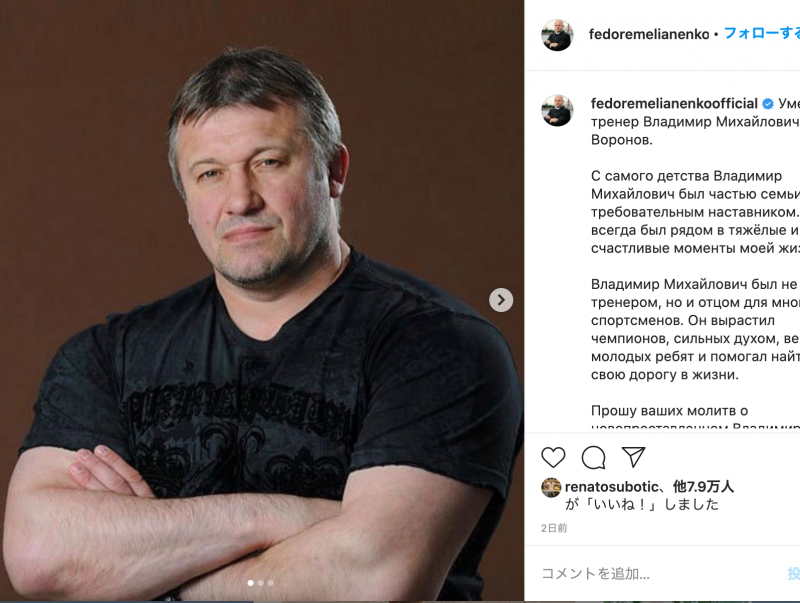 ヒョードルのコーチ、ウラジミール・ヴォロノフ氏が死去、享年55歳。(ヒョードル自身のインスタグラムより)