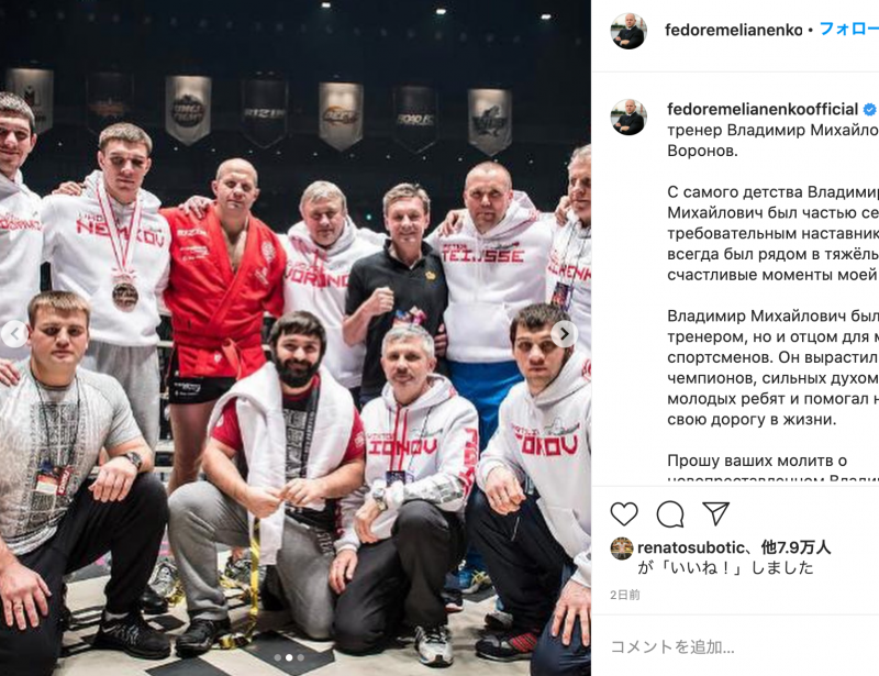 ヒョードルの向かって右隣がヴォロノフ氏。ロシアの多くの格闘技アスリートを育ててきた(ヒョードル自身のインスタグラムより)