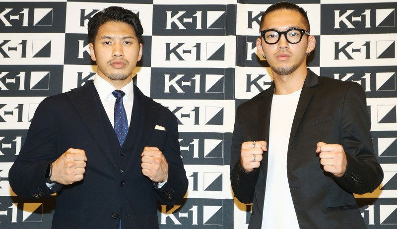 会見で卜部(左)と対面した篠原(C)K-1