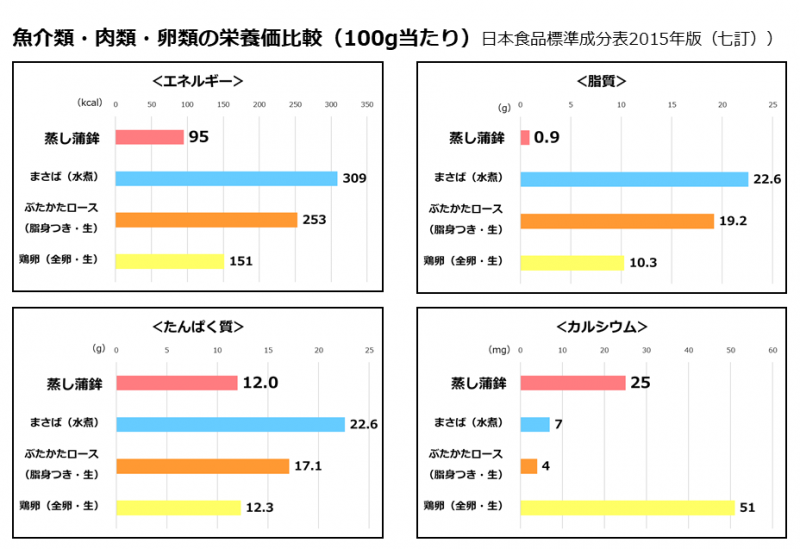 かまぼこと他食品の栄養比較(株式会社紀文食品)※図1