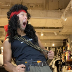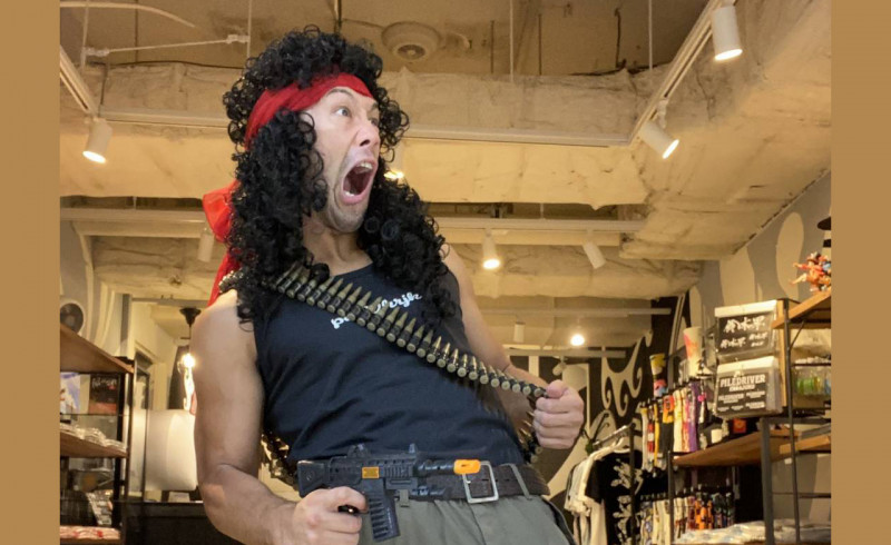 ランボー川村となり、映画「ランボー」のコスプレをする川村