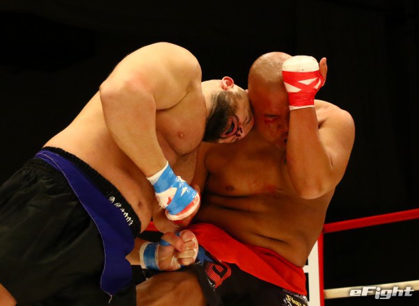 プロレスラーのハートリー・ジャクソンが頭突きを打ち込む(2017年9月)