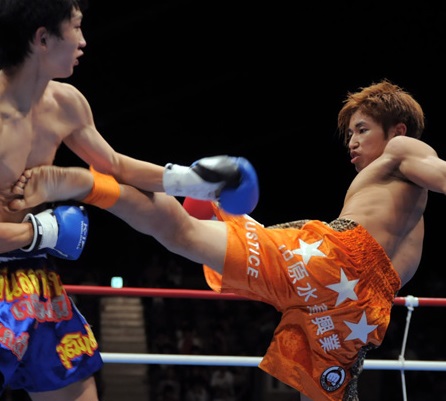 K-1ユース時代、キックを炸裂させる20歳の才賀(09年8月)