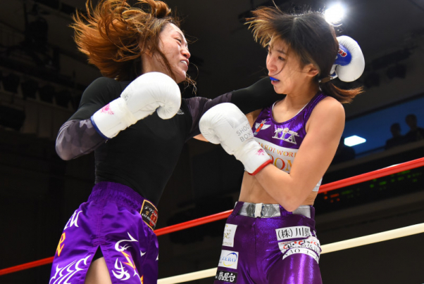 sasori(左)と女神(右)は今年2月にSBで対戦、延長戦の末にsasoriがダウンを奪取して勝利している