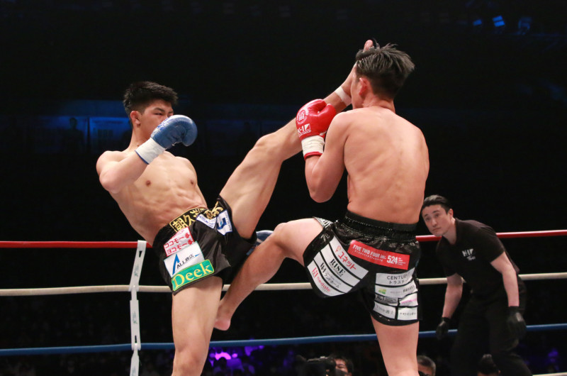 ライト級王者・林にハイキックを見舞う朝久