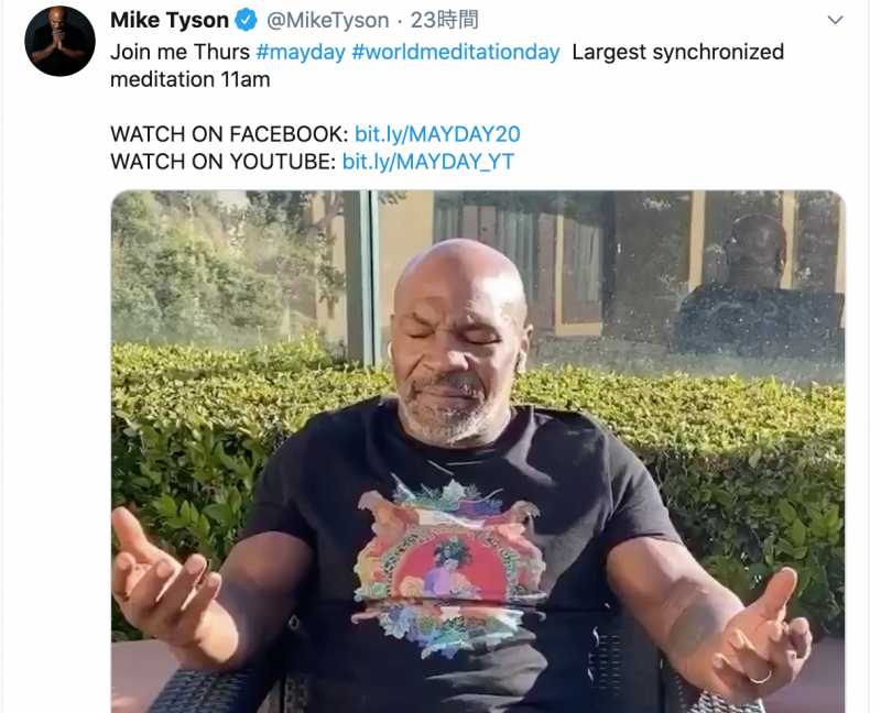 瞑想を実演しながら語るタイソン。悟り、覚醒の道を歩んでいるという(@miketysonより)