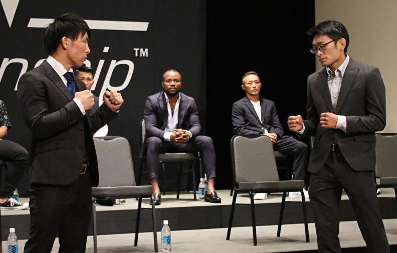 真っ直ぐ見据える猿田(左)に、視線を外すのび太(右)という対照的な2人