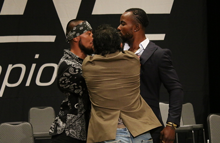 とくに引き剥がすスタッフはおらず、たった一人で止める司会の大沢ケンジ氏(中央)