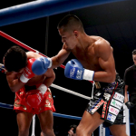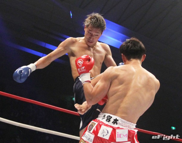 飛びヒザ蹴りで山崎に襲いかかる安保(18年12月)