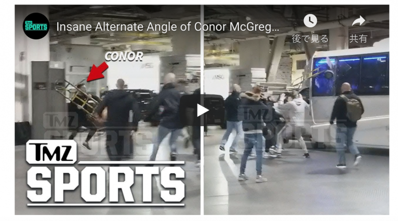18年4月にバスを襲撃しイスで襲いかかるマクレガーTMZSports:Youtubeより