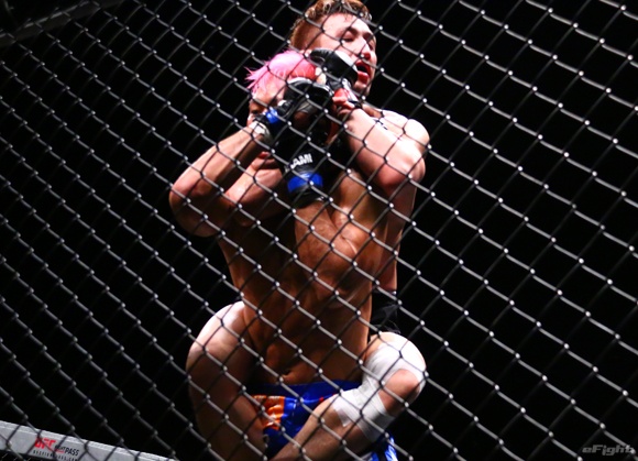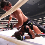 松本光史がバックチョークで一本勝ちし、修斗世界王者となった(16年4月)