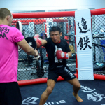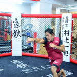 RIZINのリングで強烈な拳を振るう北岡(左)