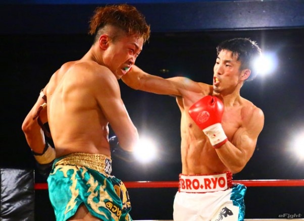 強打を直撃させダウンを奪うRYO