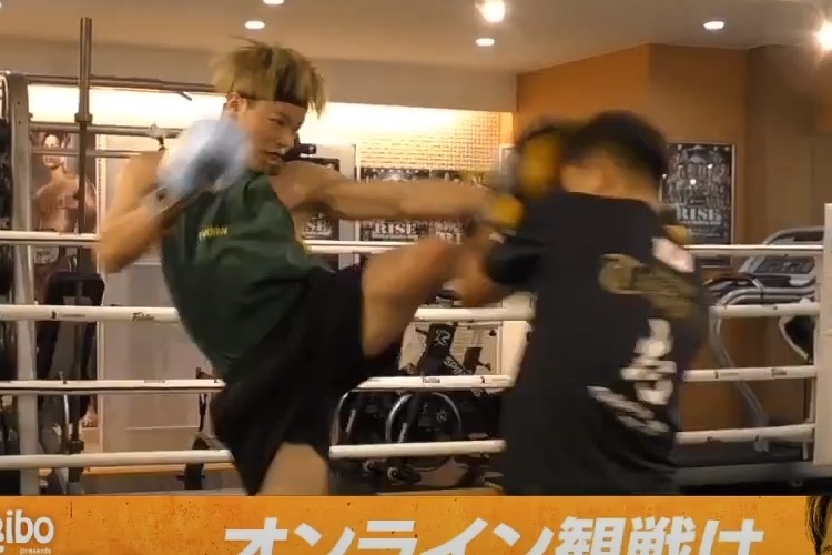 パワーが乗ったスピードある蹴りを伸ばす那須川(RIZIN YouTubeチャンネルより)