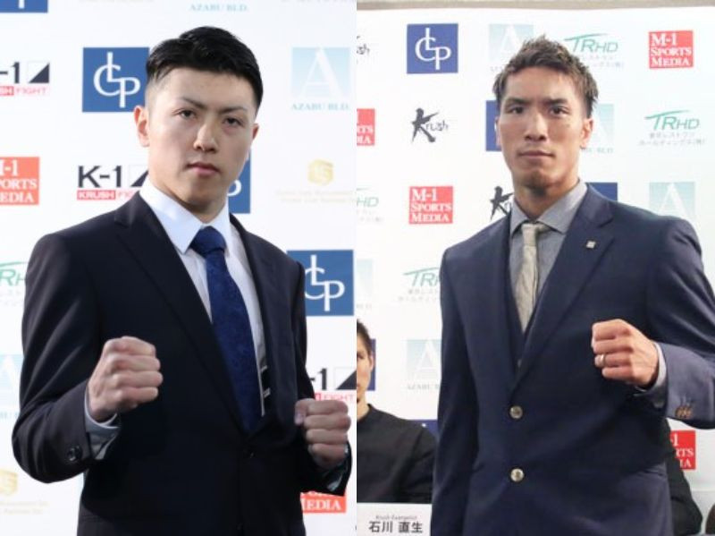 Krush王者となったばかりの山際(左)がホームリングに登場、FUMIYA(右)を迎える