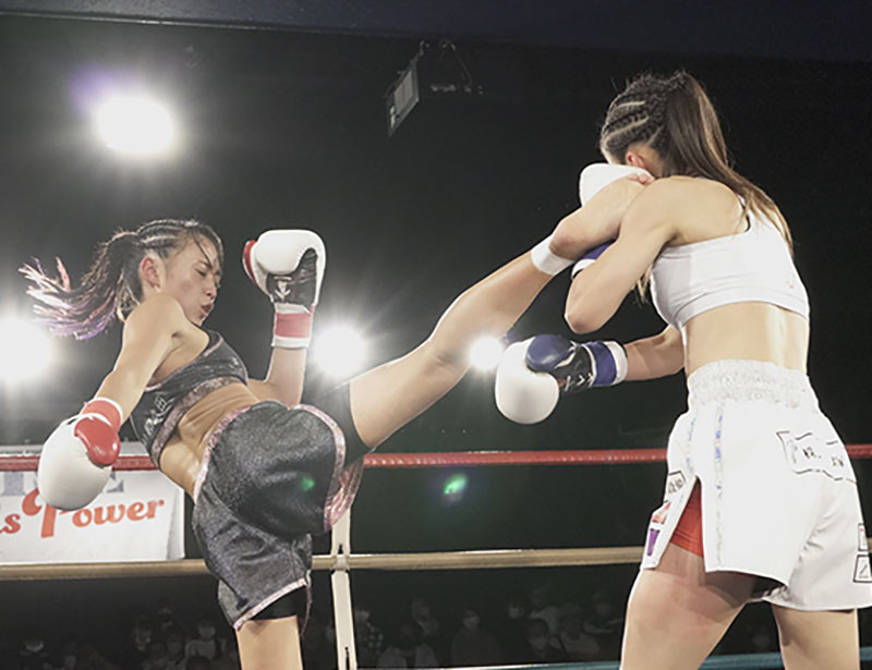 長い距離の蹴り技が持ち味の松谷(左)