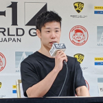 王者・江川にノンタイトル戦で勝利した椿原が会見に出席した