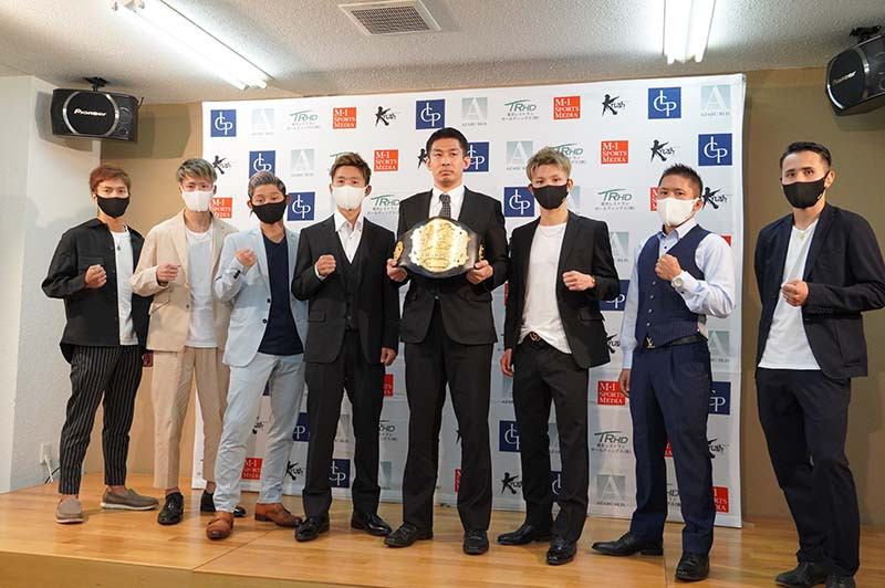 明日トーナメントが開幕する(左から)林、岡嶋、森坂、山浦(中央)中村P、(右から)新美、秀樹、玖村