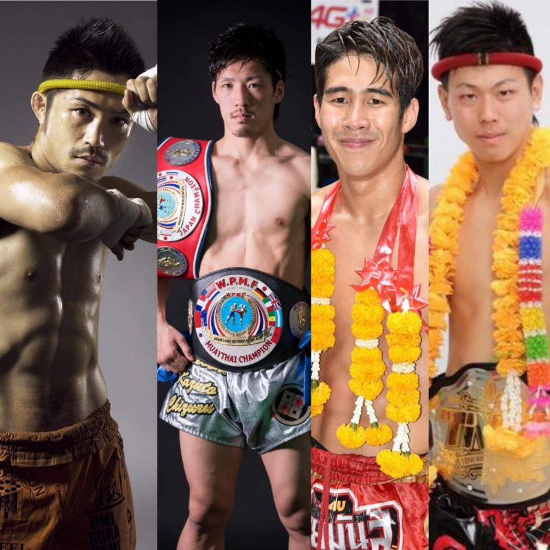 ムエタイバンタム級トーナメント開催、左から藤原、片島、ユウ、宮坂