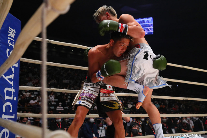 那須川が皇治にヒザ蹴りを突き刺す