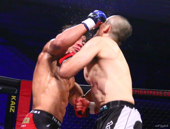 強烈な右フックで相手の意識を刈り取り勝利した吉村