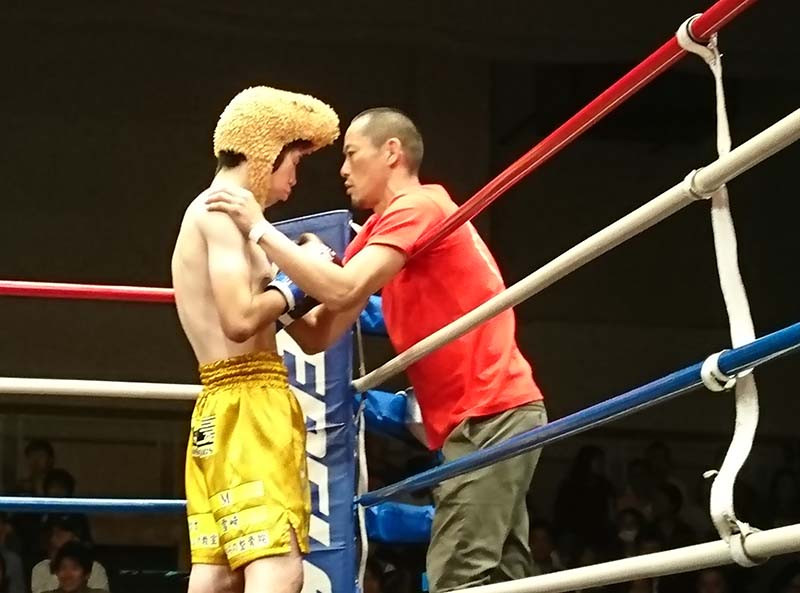 試合直前まで、モルモットの帽子を被っていた