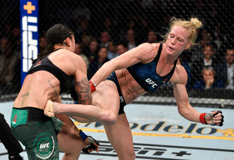 ホルムの後ろ蹴りが相手のレバーに直撃する=20年1月(C)Jeff Bottari/Zuffa LLC/UFC