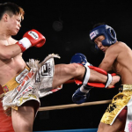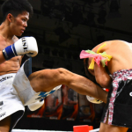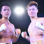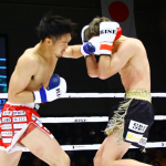 門口の左ストレートに、スリッピングアウェーで首をひねり衝撃を逃す那須川