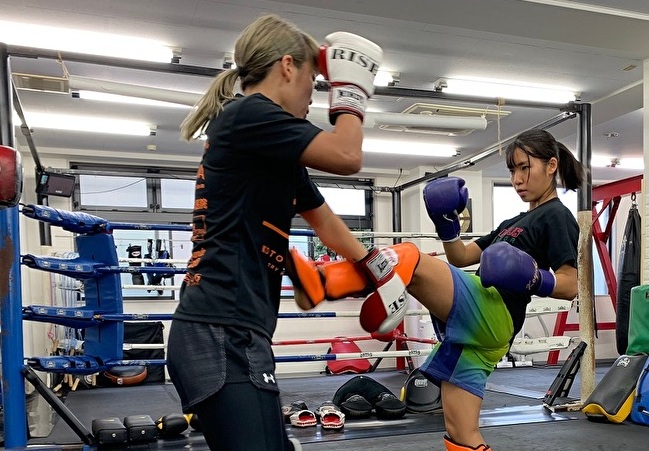 宮崎の前蹴りを下段払い