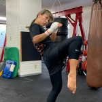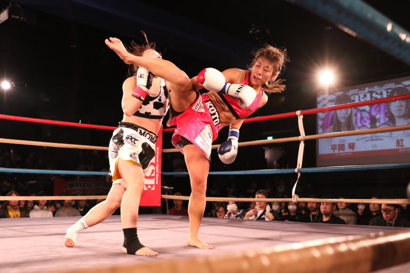 見事な後ろ回し蹴りで紅絹からダウンを奪う平岡=今年2月