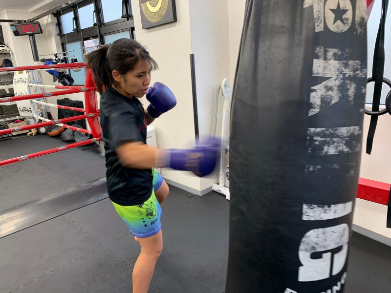 「パンチ勝負でも負けない」とバッグを殴りつける宮﨑