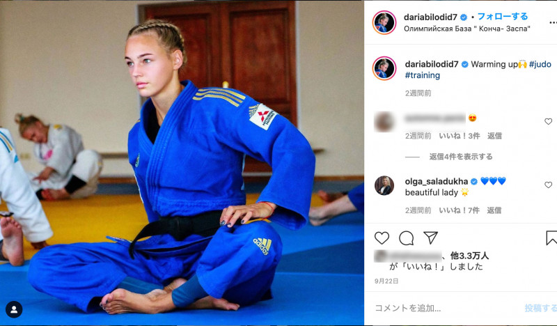 凛々しい柔道着姿でトレーニングに励むビロディド(@dariabilodid7より)