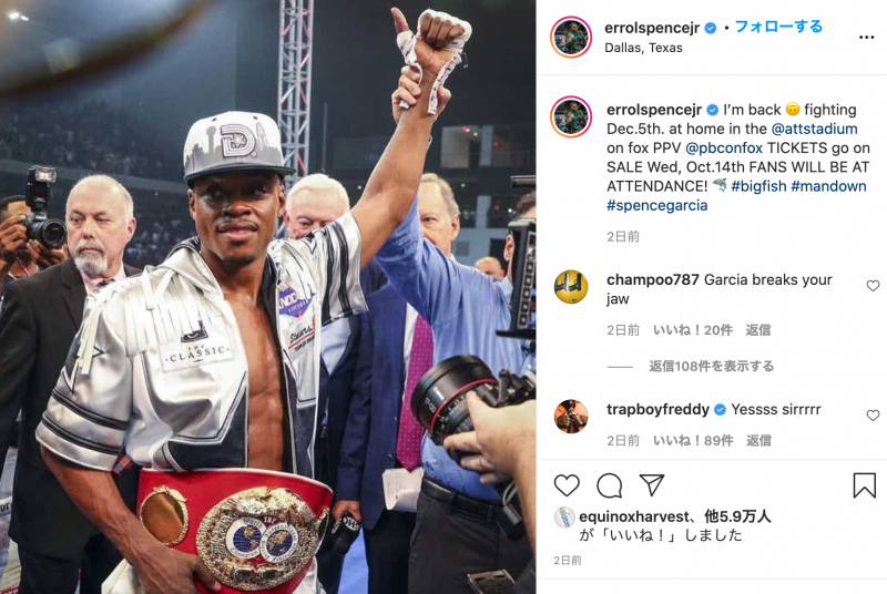 ダニエル・ガルシアとのWBC&IBF世界ウェルター級王座防衛戦が12月5日に地元で決まった事を報告する王者エロール・スペンス・ジュニア
