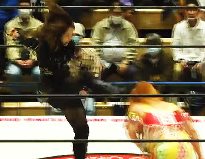 京子の顔面を貴子が蹴りつける (c)ニコニコプロレスチャンネル
