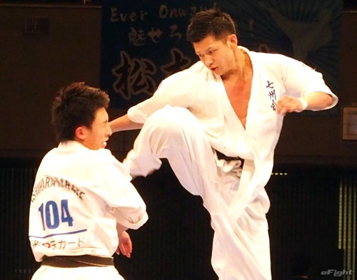 空手時代の秋元。ジャン戦でこの飛びヒザが炸裂するのか