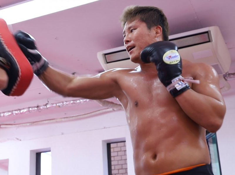 公開練習で強烈なパンチを、叩き込んだK-jee(C)K-1