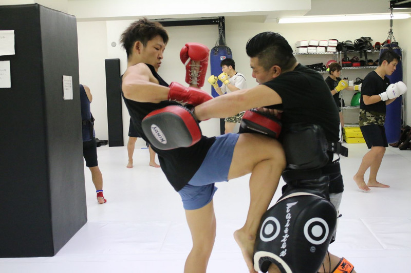 得意のヒザを叩き込む