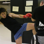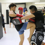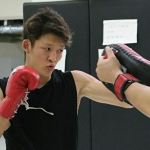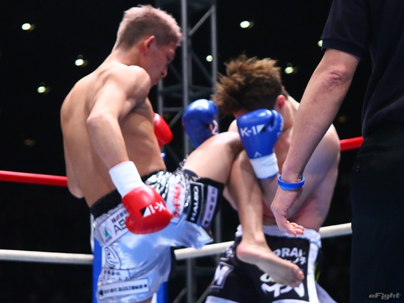 木村ミノルの顎に右ヒザを突き上げダウンを奪う野杁、1R KO勝利した=16年