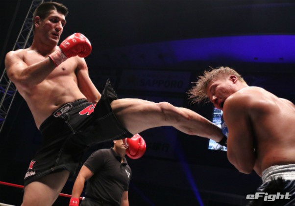 2mのカリミアンのハイキックに苦しむK-Jee(18年9月)