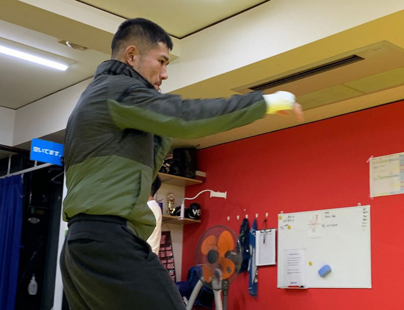 公開練習でシャープなストレート中心のシャドーを見せる中村
