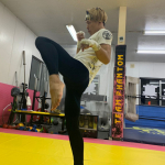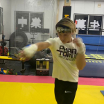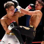 SBの象徴とも言えるロングスパッツ姿でヒザ蹴りを突き上げる