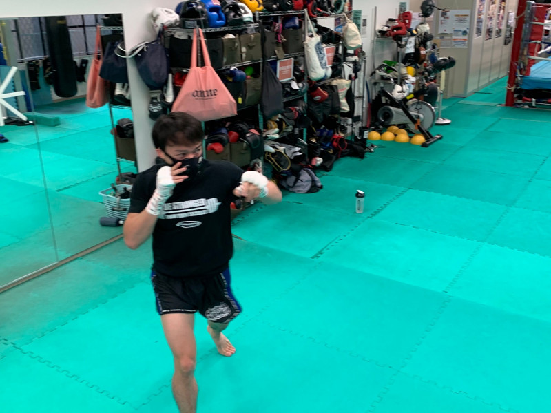 志朗は公開練習でレブナマスクを着け軽快なシャドーボクシングを行う