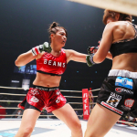 ラウンドガールを務める松嶋えいみ(左上)鈴木ふみ奈(右上)まいてぃ(左下)大貫彩香(右下)