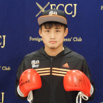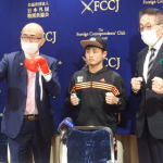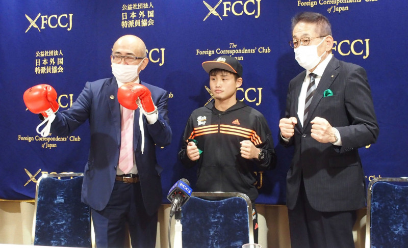 左から会見に出席した大阪観光局の溝畑宏理事長、京口紘人、渡辺均会長