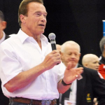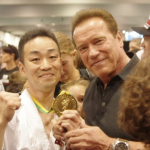 ベッドに横たわりポーズを取る手術後のシュワルツェネッガー氏@Schwarzeneggerより