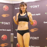 計量で、水着で仕上がりアピールする未奈(19年9月)